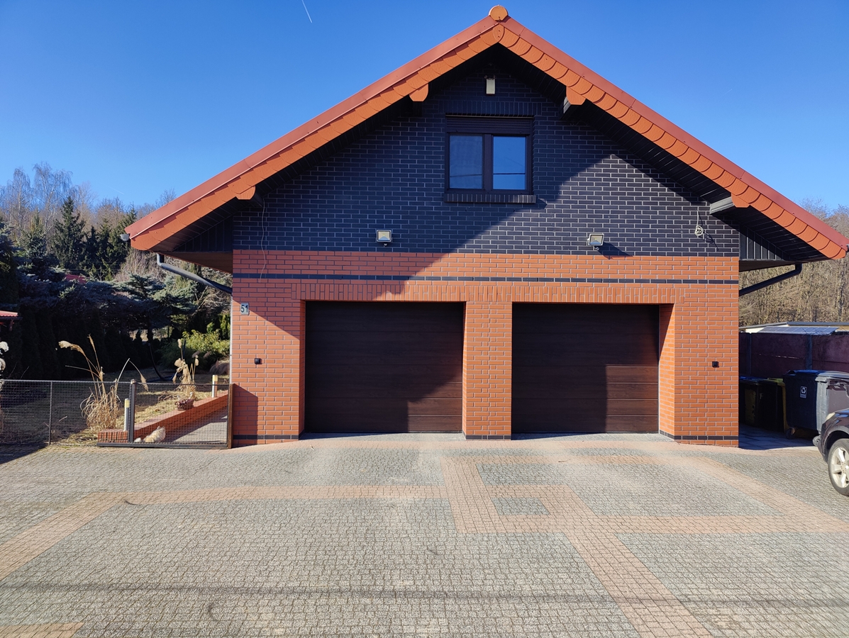 Dwie automatyczne bramy garażowe.