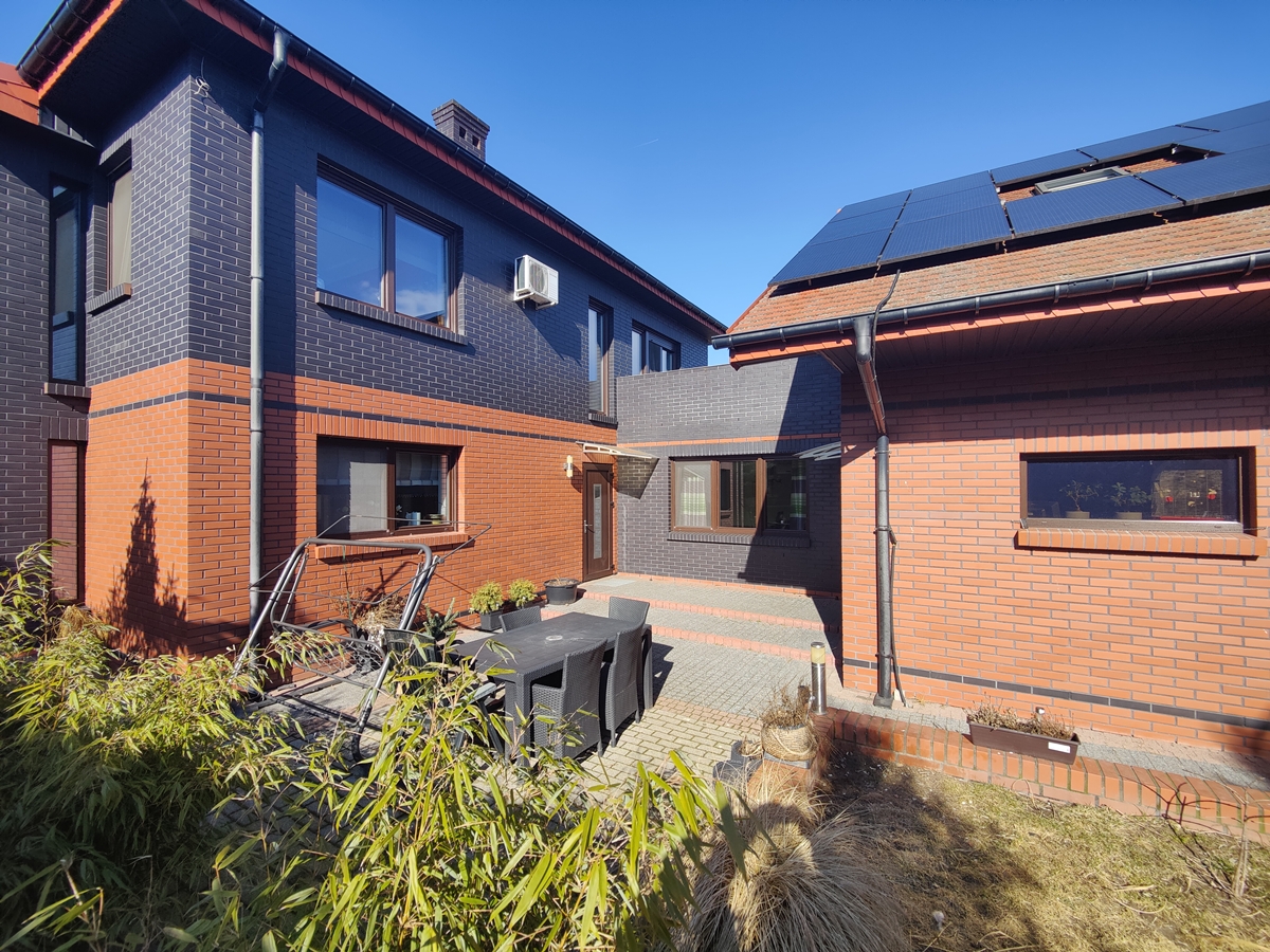 Budynek oddany do użytku w 2014 r., o powierzchni całkowitej 368,94 m2, powierzchni użytkowej części mieszkalnej 223,34 m2 oraz powierzchni garażu z poddaszem 145,60 m2 (94,1 m2 na parterze, 51,50 m2 na poddaszu), w zabudowie wolnostojącej, piętrowej, budowany według gotowego projektu „SOHO I” lustrzane odbicie z pracowni Dobre Domy ze zmianami w zakresie powiększenia salonu o część tarasową oraz adaptacji garażu na dodatkowy pokój, z dobudowanym budynkiem garażu z częścią usługową i poddaszem użytkowym.