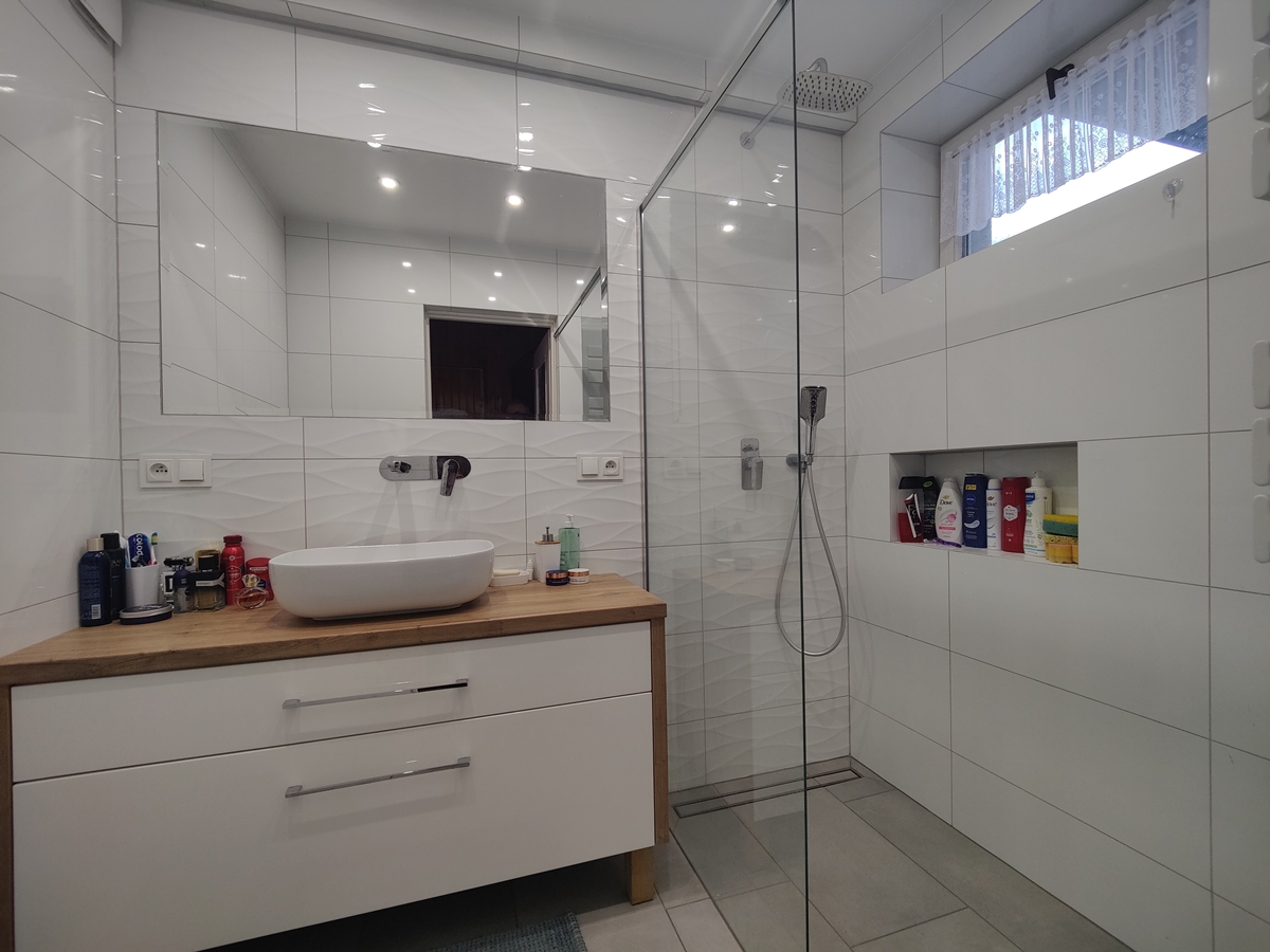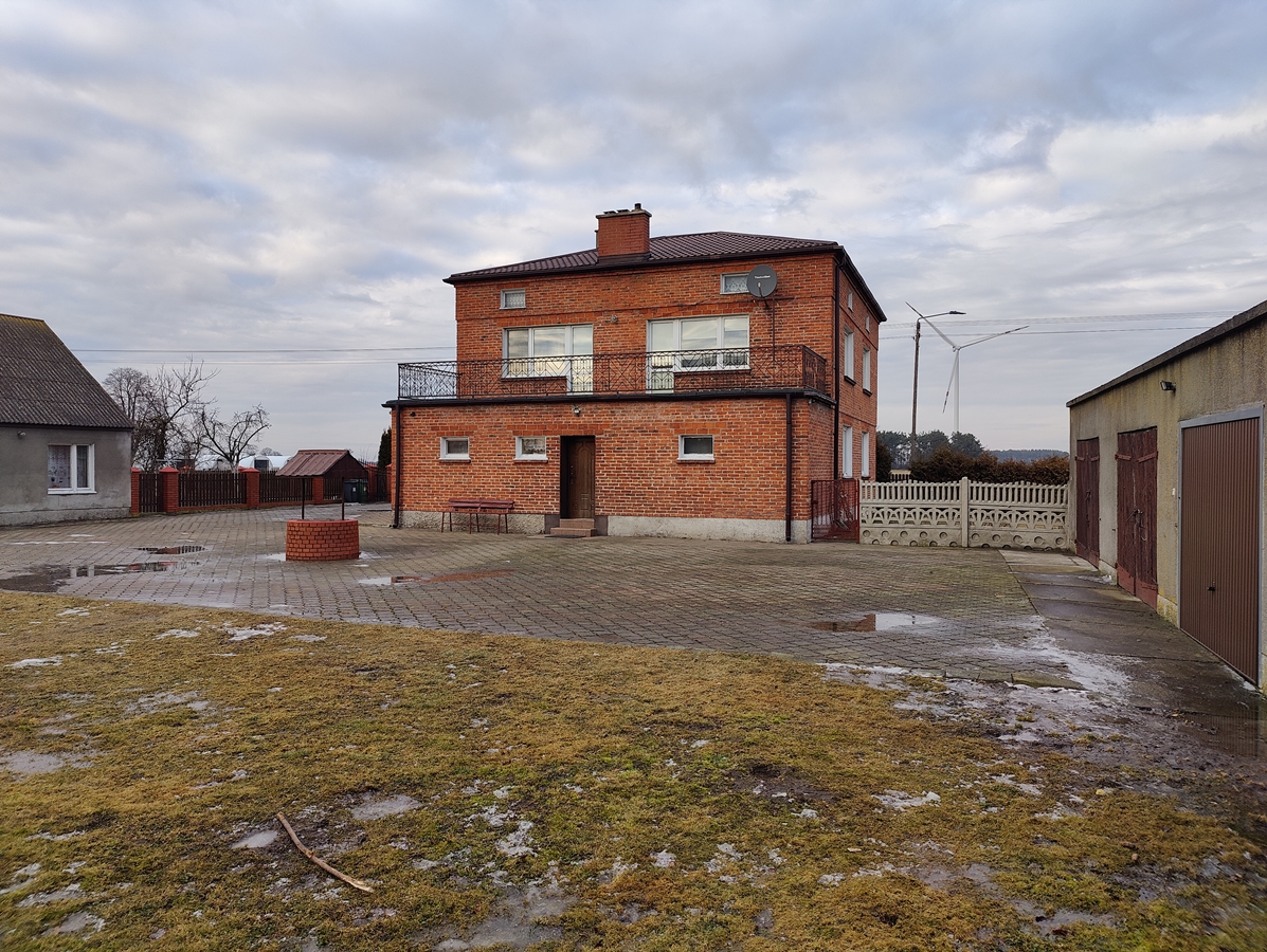 Budynek mieszkalny, w zabudowie wolnostojącej, piętrowej, o powierzchni użytkowej ok. 183 m2. Budynek murowany dwuwarstwowo z cegły czerwonej pełnej. Stolarka okienna PCV po wymianie, parapety wewnętrzne po wymianie z konglomeratu. Dach pokryty blachodachówką położoną w 2011 r. Kuchnia, łazienka i wc o remoncie.