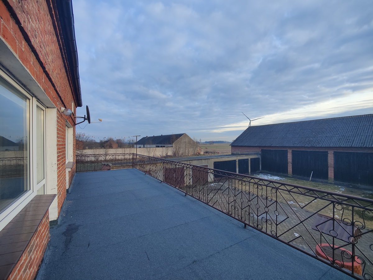 Budynek gospodarczy o powierzchni ok. 300 m2 + powierzchnia strychu, z dużymi bramami wjazdowymi, murowany z cegły czerwonej pełnej.
