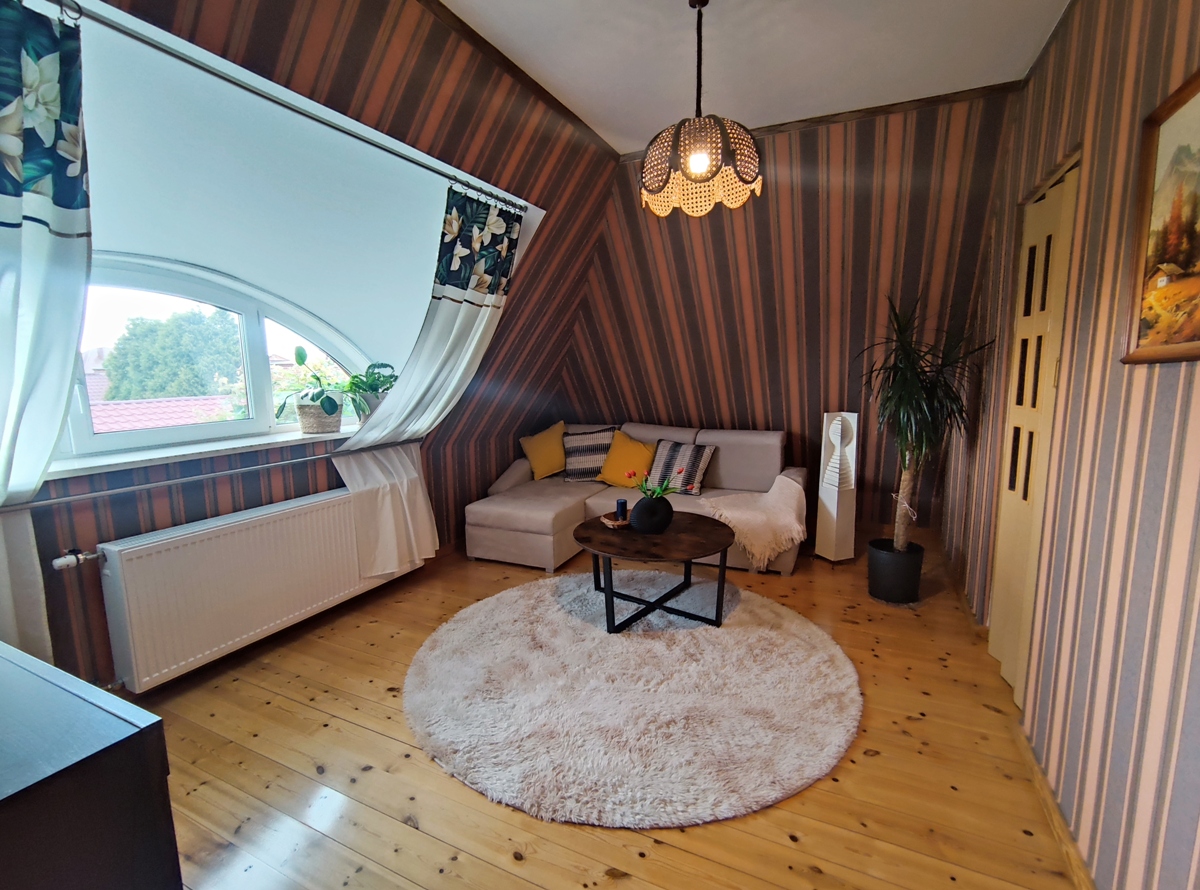 Nad poddaszem użytkowym znajduje się jeszcze strych, którego wysokość umożliwia swobodne poruszanie się po nim i stanowi idealne miejsce do przechowywania różnego rodzaju rzeczy.
