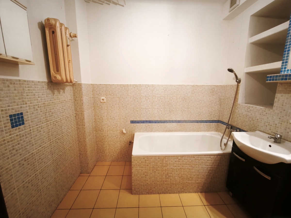 Mieszkanie o powierzchni użytkowej 33.80 m2, na którą składają się następujące pomieszczenia: kuchnia, pokój dzienny z dużym balkonem (obecnie wydzielone zostały 2 mniejsze pokoje o powierzchnia około 12m2 i 9m2), łazienka wspólna z WC, przedpokój. Do mieszkania przynależy piwnica.