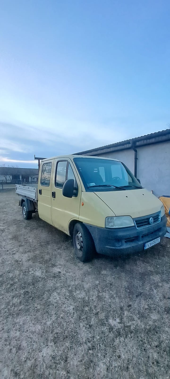 Sprzedam Fiata Ducato, dobel kabina, rok produkcji 2005, silnik 2,8 przebieg 160000. Dodatkowo z tyłu poduszki . Ważne opłaty, OC i przegląd, cena 8500.