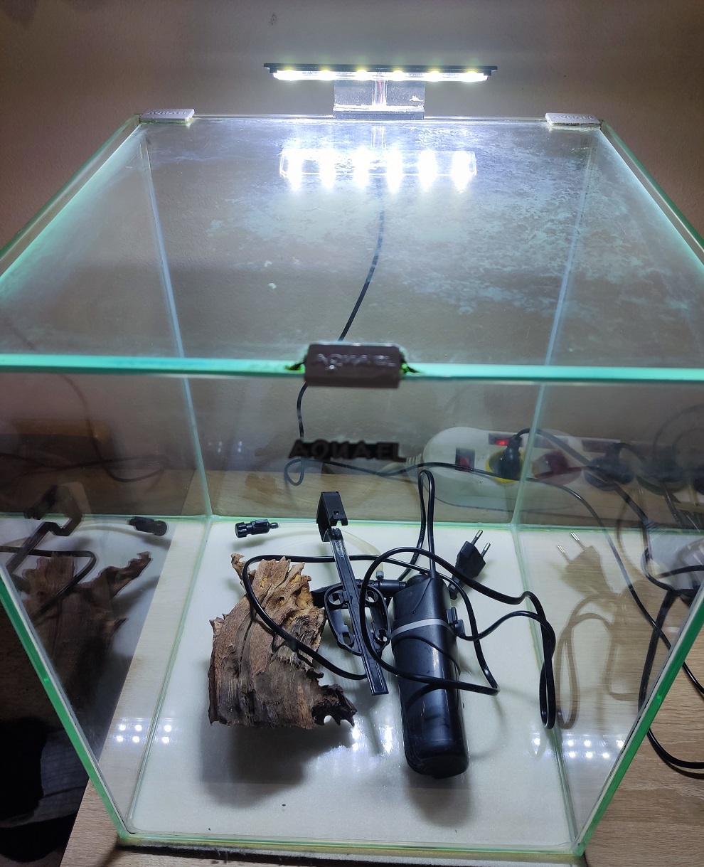 Akwarium AQUAEL o wymiarach szer .29x 29 gł. x wys.35 cm z oświetleniem.