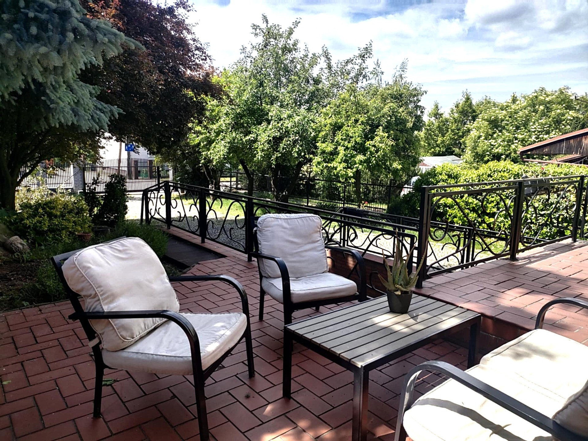 Całość położona na ogrodzonej działce z elektrycznie sterowaną brama wjazdową. Ogród z licznymi nasadzeniami roślin i drzew owocowych.