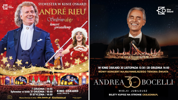 André Rieu i Andrea Bocelli – te nazwiska zna z pewnością każdy meloman. Widowiska z udziałem tych artystów, wyświetlane w Kinie Oskard, cieszą się niesłabnącą popularnością. Weź więc do kina swoich bliskich, rodzinę, sąsiadów, znajomych i cieszcie się najlepszą muzyką!